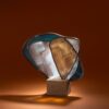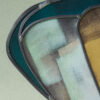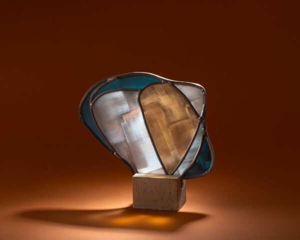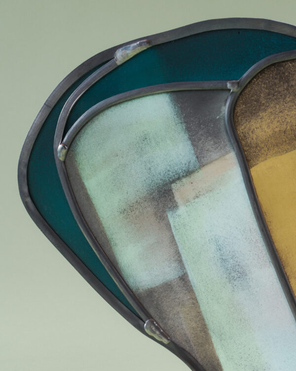 Sculpture vitrail au plomb, grisaille, socle ciment.
