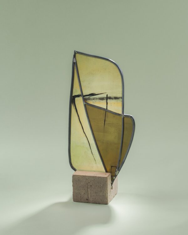 Sculpture vitrail et grisaille, socle ciment.