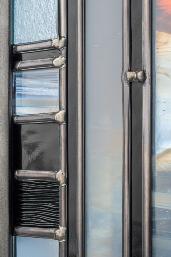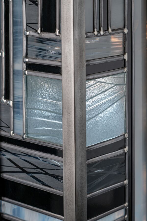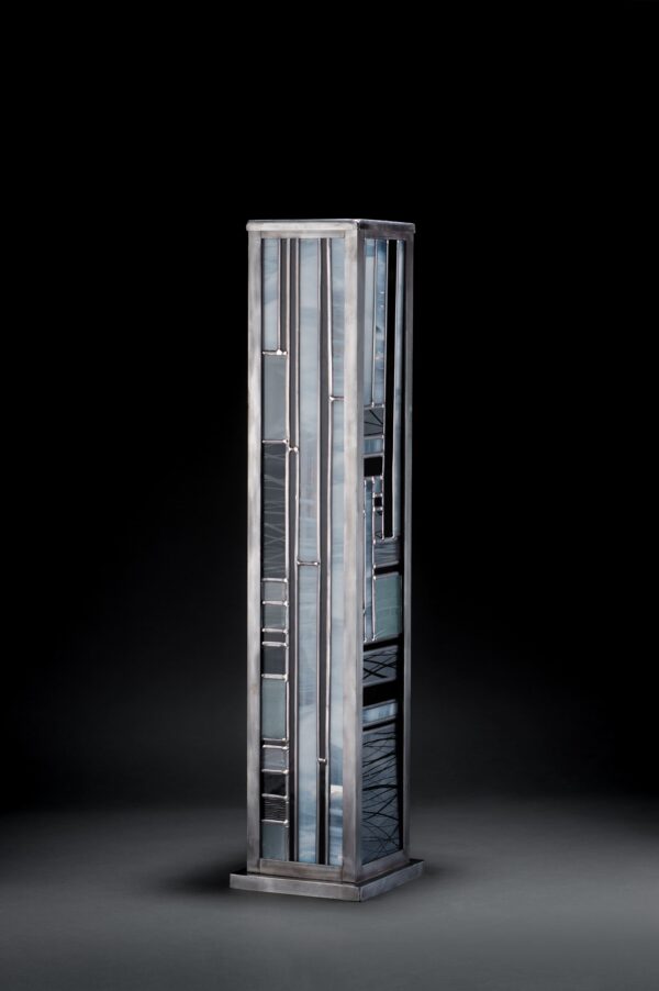 Doté d’une structure en acier brossé et de 4 panneaux de vitrail au plomb pour abat-jour, ce luminaire à poser apportera une ambiance singulière à votre espace de vie. Unique, il est à la fois oeuvre d’art et objet décoratif élégant avec ses verres soufflés, texturés, thermoformés ou peints à la grisaille. Il s’adaptera à un intérieur contemporain par son style graphique ou plus classique par ses vitraux issus de techniques séculaires.